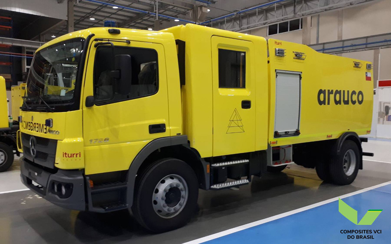 Those 100% composites cabs are used on trucks serving to fight wildfires in Chile.